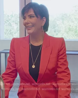 Kris Jenner (played by Kris Jenner) on The Kardashians on Hulu was spotted wearing this red blazer on The Kardashians on episode 'I Have Something to Tell You...' (2x01) in Sep 2022. Kris's Blazer is the One Button Blazer Jacket by Alexander McQueen.