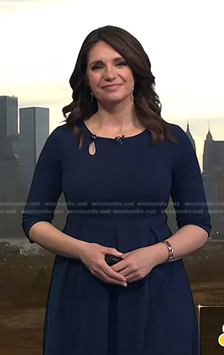 Maria Larosa on Today on NBC was spotted wearing this navy keyhole dress on Today on Nov 13 2025's episode. Maria L's Dress is the Key Hole Pleated A-Line Dress by Homeyee.