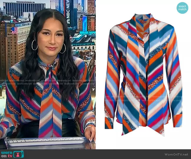 Altuzarra Newberry Sequin Stripe Silk Tieneck Top worn by Morgan Radford on NBC News Daily