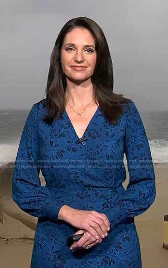 Maria Larosa on Today on NBC was spotted wearing this blue floral wrap dress on Today on Oct 23 2023's episode. Maria L's Dress is the Deep Cerulean Mini Floral Faux Wrap Dress by Ann Taylor.