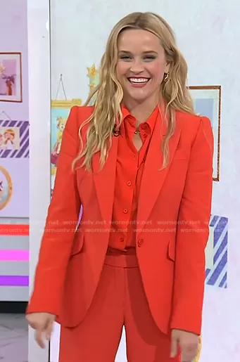 on Today on NBC was spotted wearing this orange blazer and pants on Today on Oct 04 2022's episode. 's Jacket is the Classic Single-Breasted Suiting Blazer in Dark Sunset by Alexander McQueen . 's Pants is the Classic Suiting Pants in Dark Sunset by Alexander McQueen.