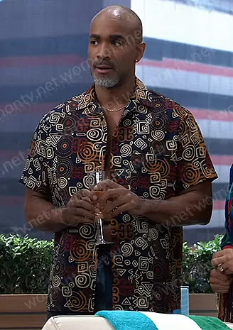 (played by Donnell Turner) on General Hospital on ABC was spotted wearing this navy printed shirt on General Hospital on Oct 04 2022's episode. 's Top is the Mechanical Shirt by Monitaly.