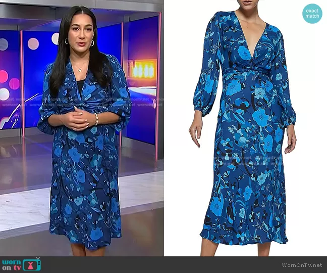 Morgan Radford on NBC News Daily on NBC was spotted wearing this blue floral midi dress on NBC News Daily on Oct 05 2022's episode. Morgan's Dress is the Floral Printed Midi-Dress by Scanlan Theodore.