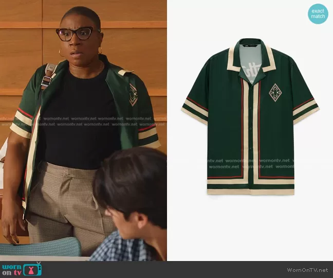 Henrietta Wilson (played by Aisha Hinds) on 9-1-1 on ABC was spotted wearing this green contrast trim shirt on 9-1-1 on episode 'Crash & Learn' (6x02) in Sep 2022. Hen's Top is the Contrast Button Shirt by Zara.