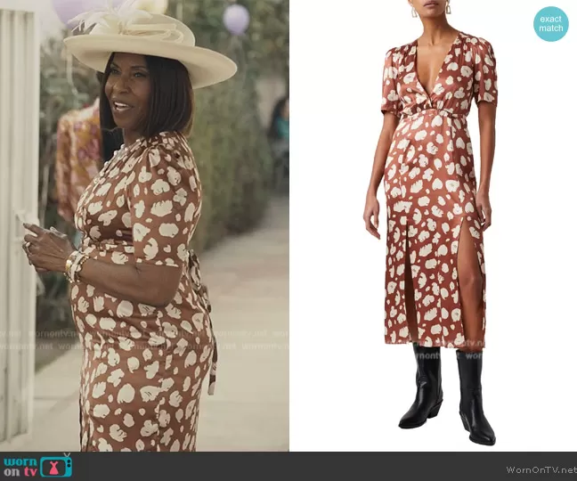 (played by Pauletta Washington) on Reasonable Doubt on Hulu was spotted wearing this brown floral print dress on Reasonable Doubt on episode 'Can't Knock the Hustle' (1x01) in Sep 2022. 's Dress is the Aimee Front Slit Dress by French Connection.