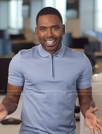 Justin Sylvester on E! News on E! was spotted wearing this blue quarter zip polo shirt on E! News Nightly Pop on Oct 05 2022's episode. Justin's Shirt is the Polston Slim Fit Cotton Zip Polo by Boss.