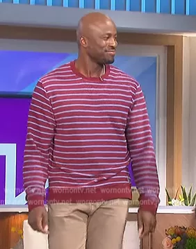 Akbar Gbajabiamila on The Talk on CBS was spotted wearing this purple stripe sweater on The Talk on Oct 07 2022's episode. Akbar's Sweater is the Striped crewneck felpa sweatshirt by Scotch and Soda.
