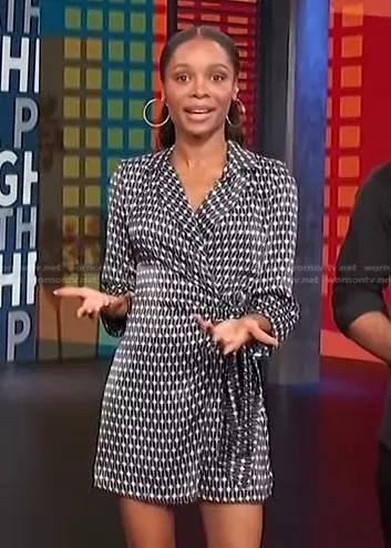 Zuri Hall on Access Hollywood on NBC was spotted wearing this black printed wrap dress on Access Hollywood on Jan 02 2023's episode. Zuri's Dress is the Printed Blazer Dress by Zara.