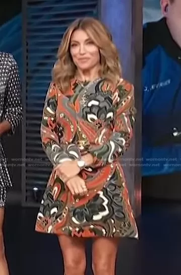 Kit Hoover on Access Hollywood on NBC was spotted wearing this abstract print mini dress on Access Hollywood on Oct 10 2022's episode. Kit's Dress is the Printed Short Dress by Zara.
