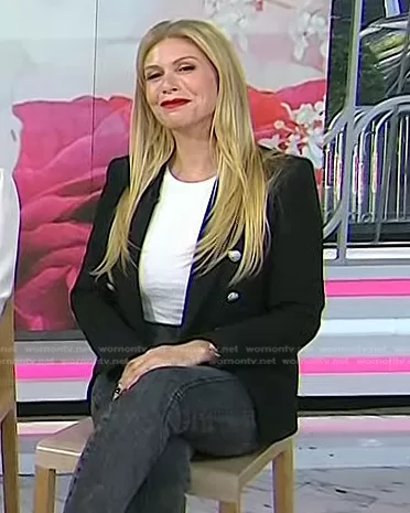 Jill Martin on Today on NBC was spotted wearing this black double breasted blazer on Today on Oct 11 2022's episode. Jill's Jacket is the Miller Dickey Jacket by Veronica Beard . Jill's Lipstick is the Bold Lip Color Stick in Brava by Reina Rebelde.