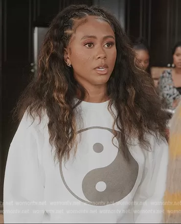 Keisha (played by Netta Walker) on All American Homecoming on CWTV was spotted wearing this white yin yang graphic sweatshirt on All American Homecoming on episode 'We Need a Resolution' (2x01) in Oct 2022. Keisha's Sweater is the Yin Yang Sweatshirt by Princess Polly.