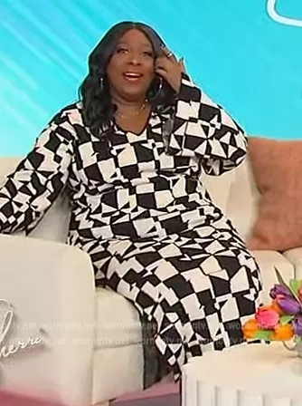 on Sherri on FOX was spotted wearing this geometric print top and skirt on Sherri on Oct 11 2022's episode. 's Sweater is the V Neck Intarsia Sweater by Eloquii . 's Skirt is the Intarsia Sweater Midi Skirt by Eloquii.