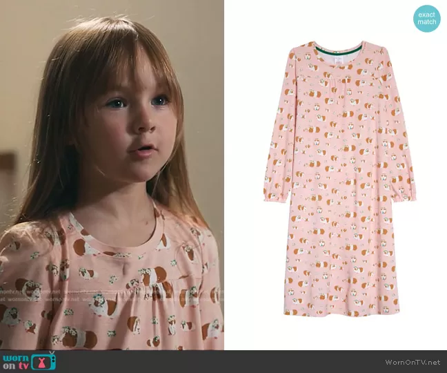 Gigi (played by Remington Blaire Evans) on The Resident on Fox was spotted wearing this guinea pig print nightgown on The Resident on episode 'It Won't Be Like This for Long' (6x04) in Oct 2022. 's Pajama is the Kids' Guinea Pig Print Nightie by Mini Boden.