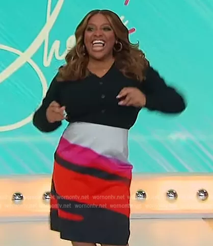 Sherri Shepherd on Sherri on FOX was spotted wearing this tie dye print skirt on Sherri on Oct 12 2022's episode. Sherri's Skirt is the Salby Skirt by Dries van Noten.