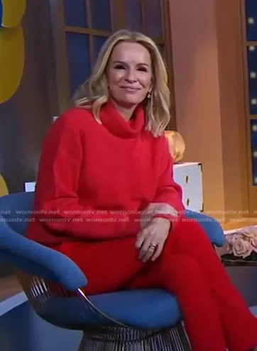 Dr. Jennifer Ashton on Good Morning America on ABC was spotted wearing this red turtleneck sweater on Good Morning America on Nov 04 2023's episode. Jennifer's Sweater is the Reverse Jersey Knit Turtleneck Sweater by St. John.