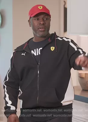 (played by Corey Gamble) on The Kardashians on Hulu was spotted wearing this black Puma jacket on The Kardashians on episode 'We're Built for This' (2x04) in Oct 2022. 's Jacket is the Ferrari MT7 Zip-Front Moisture-Wicking Track Jacket by Puma.