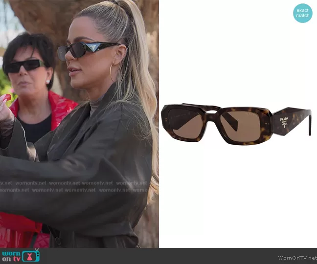 Khloe Kardashian (played by Khloe Kardashian) on The Kardashians on Hulu was spotted wearing this geometric sunglasses on The Kardashians on episode 'We're Built for This' (2x04) in Oct 2022. Khloe's Sunglasses is the PR17WS Sunglasses by Prada.