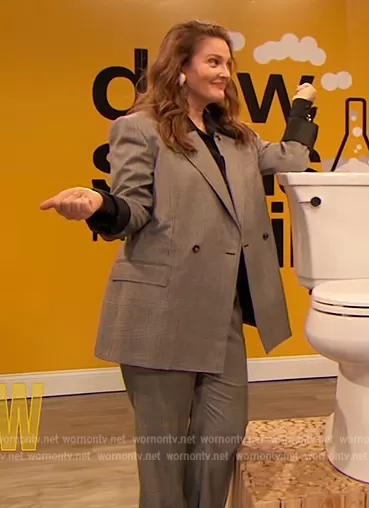 Drew Barrymore on The Drew Barrymore Show on CBS was spotted wearing this gray plaid blazer on The Drew Barrymore Show on Jan 23 2023's episode. Drew's Blazer is the Seun double-breasted check wool-blend suit jacket by Gabriela Hearst . Drew's Pants is the Rhein check wool-blend suit trousers by Gabriela Hearst.