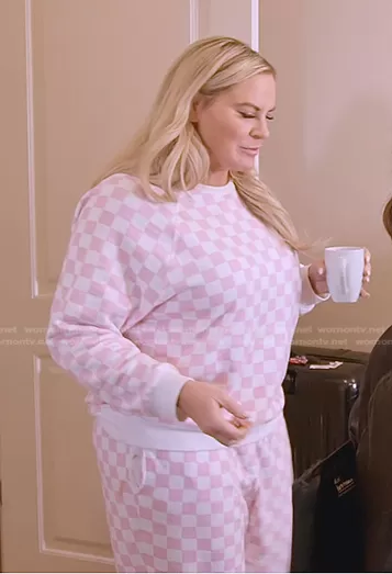 Heather Gay on The Real Housewives of Salt Lake City on Bravo was spotted wearing this pink checkered sweatshirt and pants on The Real Housewives of Salt Lake City on episode 'Courtside Conundrum' (3x03) in Oct 2022. Heather's Sweater is the Checkered Sweatshirt by Grayson Threads . Heather's Pants is the Checkered Sweatpants by Grayson Threads.