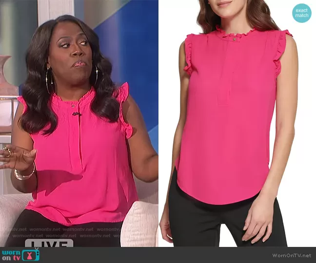 DKNY Petite Sleeveless Ruffled Blouse worn by Sheryl Underwood on The Talk