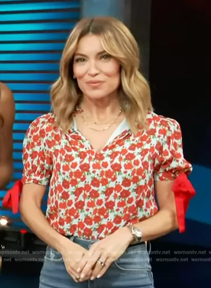 Kit Hoover on Access Hollywood on NBC was spotted wearing this red and blue floral top on Access Hollywood on Feb 07 2024's episode. Kit's Top is the Irene Blouse by Alice + Olivia.