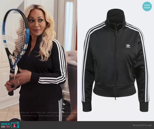 Karen Huger on The Real Housewives of Potomac on Bravo was spotted wearing this black Adidas jacket on The Real Housewives of Potomac on episode 'Allegation Nation' (7x02) in Oct 2022. Karen's Jacket is the Adicolor Firebird Primeblue Track Jacket by Adidas . Karen's Pants is the Adicolor firebird track pants in black by Adidas.