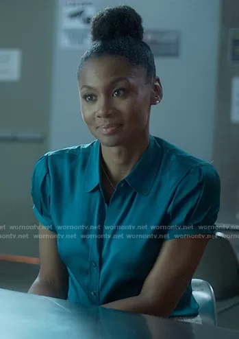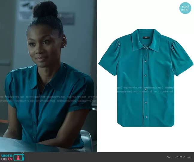 Jax Stewart (played by Emayatzy Corinealdi) on Reasonable Doubt on Hulu was spotted wearing this teal short sleeve shirt on Reasonable Doubt on episode 'So Ambitious' (1x05) in Oct 2022. Jax's Top is the Short Sleeve shirt in Re-Imagined Silk by J. Crew.