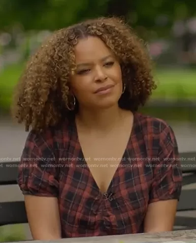 on Today on NBC was spotted wearing this red plaid top on Today on Oct 18 2022's episode. 's Top is the Plaid Gathered V-Neck Top by Madewell.