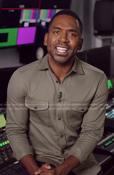 Justin Sylvester on E! News on E! was spotted wearing this khaki green shirt on E! News Nighly Pop on Oct 19 2022's episode. Justin's Shirt is the Arlo Cotton Shirt by Reiss.