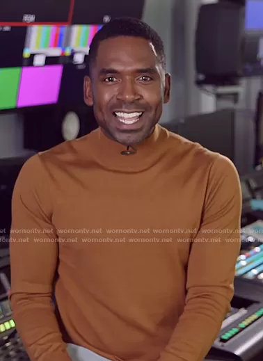 Justin Sylvester on E! News on E! was spotted wearing this beige turtleneck sweater on E! News Nightly Pop on Oct 20 2022's episode. Justin's Sweater is the Industrial Mock Neck Wool Sweater by Sandro.