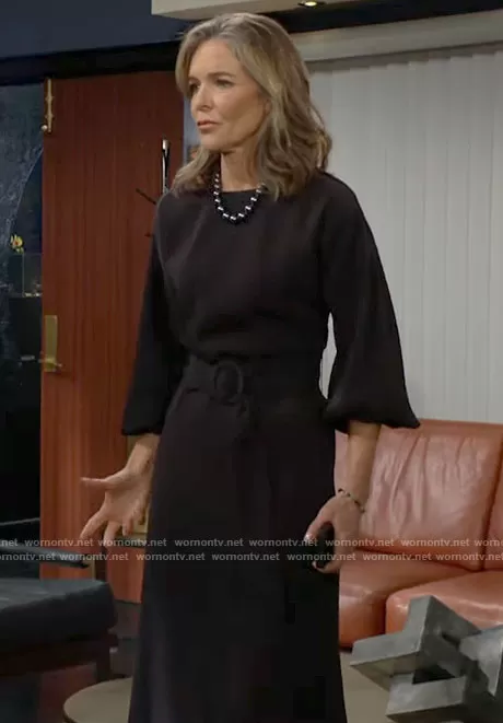 Diane Jenkins (played by Susan Walters) on The Young and the Restless on CBS was spotted wearing this black belted dress on The Young and the Restless on Oct 20 2022's episode. Diane's Dress is the Annie Dress by Sachin + Babi.