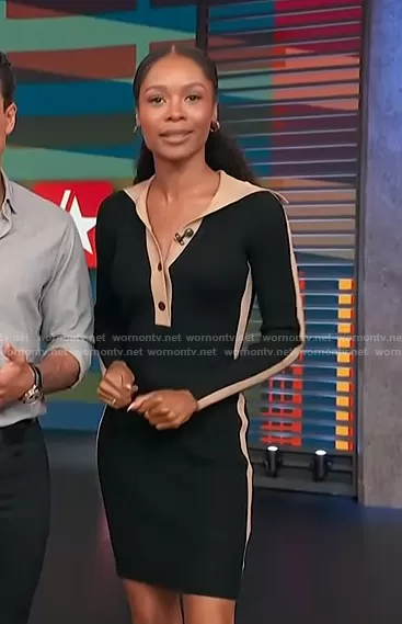 Zuri Hall on Access Hollywood on NBC was spotted wearing this black contrast trim polo dress on Access Hollywood on Oct 20 2022's episode. Zuri's Dress is the Danielle Dress by Reiss.