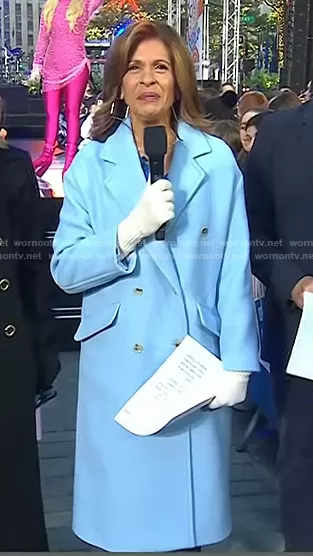 Hoda Kotb on Today on NBC was spotted wearing this blue double breasted coat on Today on episode 'Bad Weather Betrayal' (3x04) in Jan 2024. Hoda's Coat is the Wool Blend Oversized Coat by Zara.