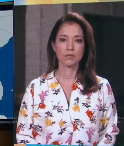 on Good Morning America on ABC was spotted wearing this white floral blouse on Good Morning America on Oct 02 2024's episode. 's Top is the Floral Camp Shirt by Ann Taylor.