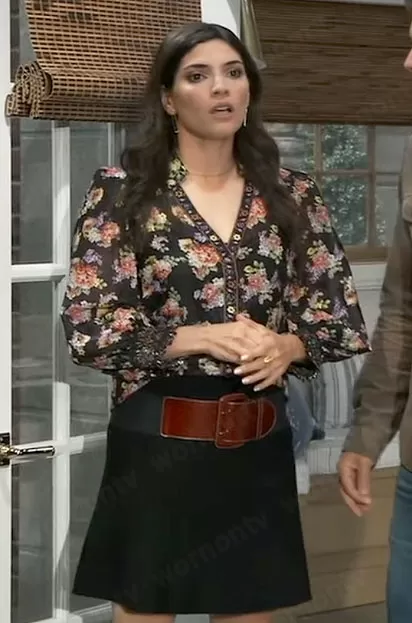 Brook Lynn Quartermaine (played by Amanda Setton) on General Hospital on ABC was spotted wearing this black floral v-neck blouse on General Hospital on Jun 29 2023's episode. Brook Lynn's Top is the Cosima Top in Magnolia Floral Black by Alice + Olivia.