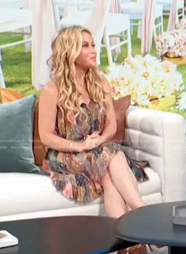 Zimmermann Ninety-Six Patchwork Fit-&-Flare Silk Dress worn by Tara Lipinski on Access Hollywood