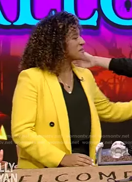 on Live with Kelly and Mark on Disney ABC Home Entertainment was spotted wearing this yellow double breasted blazer on Live with Kelly and Ryan on Oct 26 2022's episode. 's Blazer is the Yellow Double Breasted Blazer by Zara.