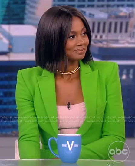 on The View on ABC was spotted wearing this green blazer on The View on Oct 26 2022's episode. 's Blazer is the Carter stretch-crepe blazer by Alex Perry.