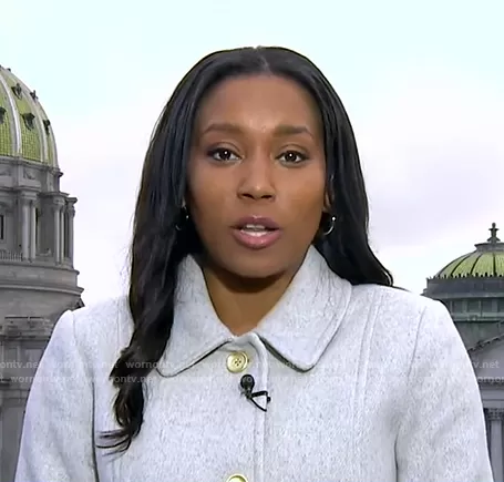 Rachel Scott on Good Morning America on ABC was spotted wearing this grey coat on Good Morning America on Oct 26 2022's episode. Rachel's Coat is the Wool-Blend Lady Coat by J. Crew.