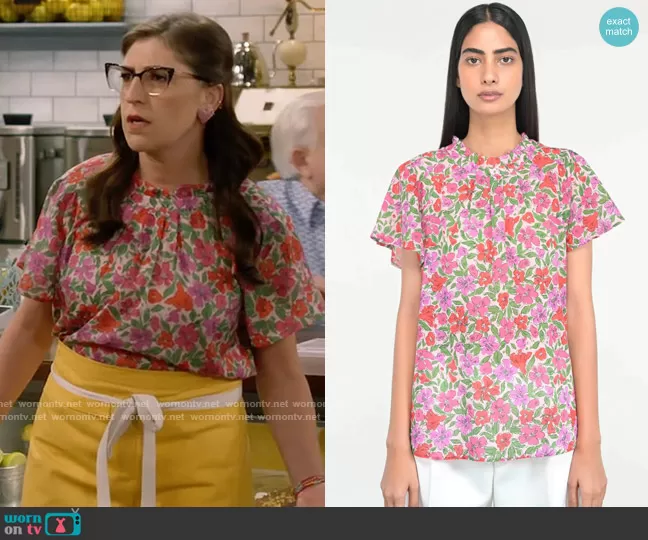 Kat Silver (played by Mayim Bialik) on Call Me Kat on Fox was spotted wearing this floral short sleeve blouse on Call Me Kat on episode 'Call Me Uncle Dad' (3x05) in Oct 2022. Kat's Top is the Joyful Top in Melodic Floral Bonbon by Banjanan.