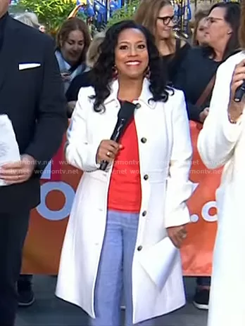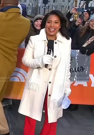 Sheinelle Jones on Today on NBC was spotted wearing this white coat on Today on Dec 01 2025's episode. Sheinelle's Coat is the Classic Lady Day Coat in Italian Double-Cloth Wool with Thinsulate by J. Crew.