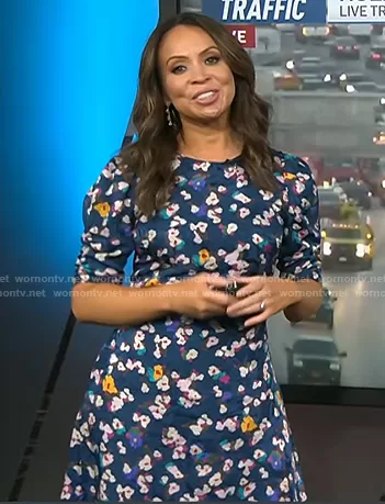 Adelle Caballero on Today on NBC was spotted wearing this blue floral dress on Today on Oct 27 2022's episode. Adelle's Dress is the Liz Floral Silk Jacquard Dress by Tanya Taylor.