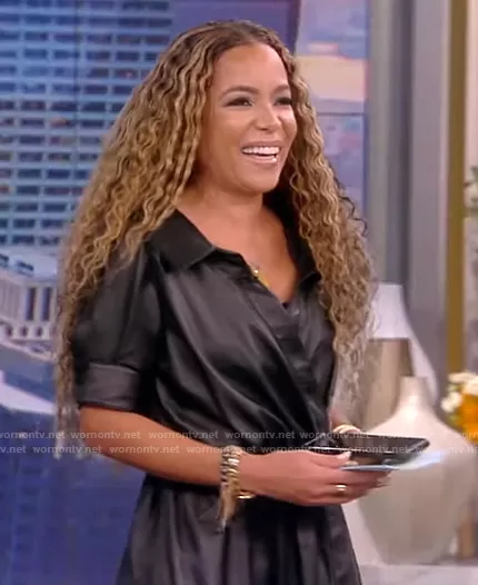 Sunny Hostin on The View on ABC was spotted wearing this black leather wrap dress on The View on Oct 27 2022's episode. Sunny's Dress is the Lydia Lambskin Leather Shirtdress by Altuzarra.
