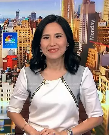 Vicky Nguyen on NBC News Daily on NBC was spotted wearing this white zip detail dress on NBC News Daily on Oct 31 2022's episode. Vicky's Dress is the Milena Dress by Trina Turk.