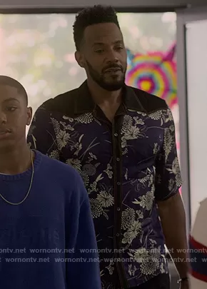 (played by McKinley Freeman) on Reasonable Doubt on Hulu was spotted wearing this blue floral print shirt on Reasonable Doubt on episode 'N**** What, N**** Who' (1x07) in Nov 2022. 's Shirt is the Highlife floral bowling shirt by Wales Bonner.
