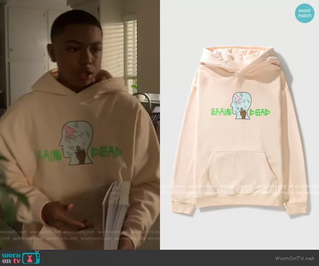 (played by Thaddeus J. Mixson) on Reasonable Doubt on Hulu was spotted wearing this brain dead graphic hoodie on Reasonable Doubt on episode 'N**** What, N**** Who' (1x07) in Nov 2022. 's Sweater is the Handheld Hoodie by Brain Dead.