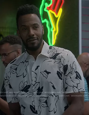 (played by McKinley Freeman) on Reasonable Doubt on Hulu was spotted wearing this white floral print shirt on Reasonable Doubt on episode 'N**** What, N**** Who' (1x07) in Nov 2022. 's Shirt is the Ashby Floral Outline Cotton Short Sleeve Button-Up Shirt by Ted Baker.