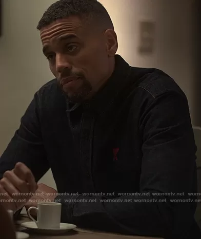 (played by Michael Ealy) on Reasonable Doubt on Hulu was spotted wearing this denim shirt on From Reasonable Doubt on episode 'N**** What, N**** Who' (1x07) in Nov 2022. 's Shirt is the Logo-Embroidered Denim Shirt by Ami Paris.