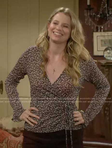 Summer Newman (played by Allison Lanier) on The Young and the Restless on CBS was spotted wearing this floral wrap top on The Young and the Restless on Nov 02 2022's episode. Summer's Top is the Ruffle Cuff Wrap Top by & Other Stories .