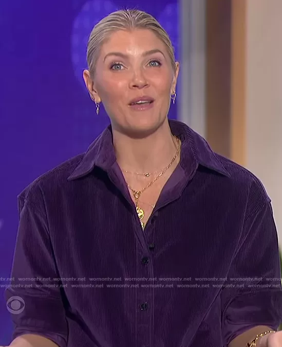Amanda Kloots on The Talk on CBS was spotted wearing this purple corduroy shirt and pants on The Talk on Nov 02 2022's episode. Amanda's Top is the Purple Shirt in Corduroy by The Kooples . Amanda's Pants is the Corduroy Pants in Corduroy by The Kooples.